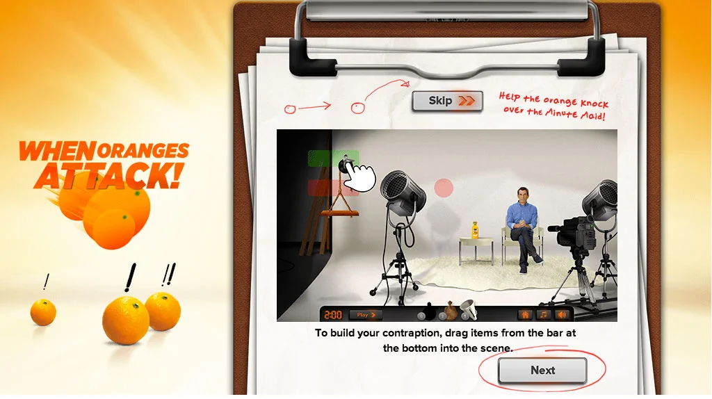 Oranges and Lemons are mad that Minute Maid tastes just as good as they do. We used "Modern Family's" Ty Burrell to try to calm the fruit down (to no avail). This campaign narrative started with TV, but then flowed seamlessly across all screens and devices. Here's some online content, TV, and screen grabs from a "Rube-Goldberg Style" mini-game.